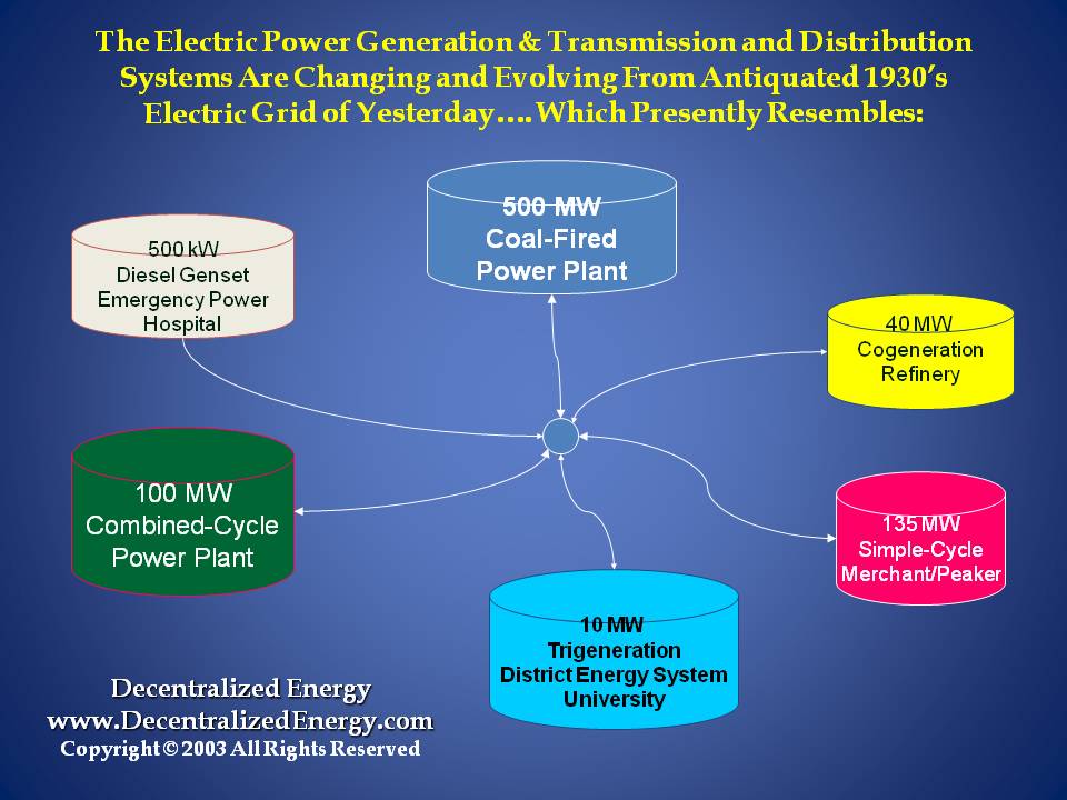 Centralized energy is found in the form of electric utility companies that generate power from "central" power plants. Central power plants are highly inefficient, averaging only 33% net system efficiency. This means that the power coming to your home or business - including the line losses and transmission inefficiencies of moving the power - has lost 75% to as much as 80% energy it started with at the "central" power plant. These losses and inefficiencies translate into significantly increased energy expenses by the residential and commercial consumers.